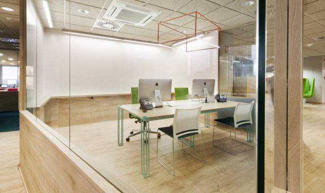 3、小空間辦公室裝修不能選用大面積的鮮亮的暖色調。因為暖色調能在視覺上使距離拉近。裝修設計時,應以大面積的中性色或冷調為主,點綴暖色調加以調和。比如令墻角地燈發(fā)暖色光。