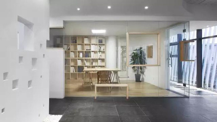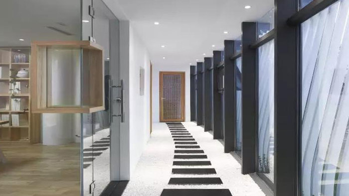任何一種材料,放在不同的空間中都可以呈現(xiàn)出一種不同的感覺。在康藍(lán)裝飾的辦公空間中,一進(jìn)門的位置就可見到一組鋼筋所搭建的造型,而這個(gè)造型的作用并非承重,而是作為影壁使用。這是一種另類的構(gòu)思,但卻并非不可運(yùn)用。在一些以銷售為主的公司中,所要呈現(xiàn)的質(zhì)感即為干凈整潔,所體現(xiàn)的企業(yè)文化也不再是裝修公司中的創(chuàng)新。