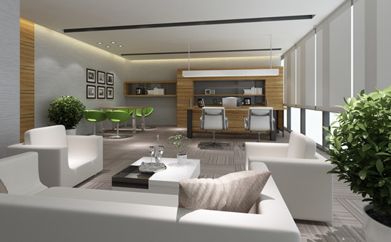 在裝飾辦公室時,我們首先應(yīng)該對地面進(jìn)行裝修,不平整的地方要用砂漿找平,或者用水泥自流平也可以。地面找平后,您可以選擇鋪貼瓷磚或者木板。現(xiàn)在也有不少老板在平整的地面上鋪上地毯,效果也是不錯的,而且更加的靜音。