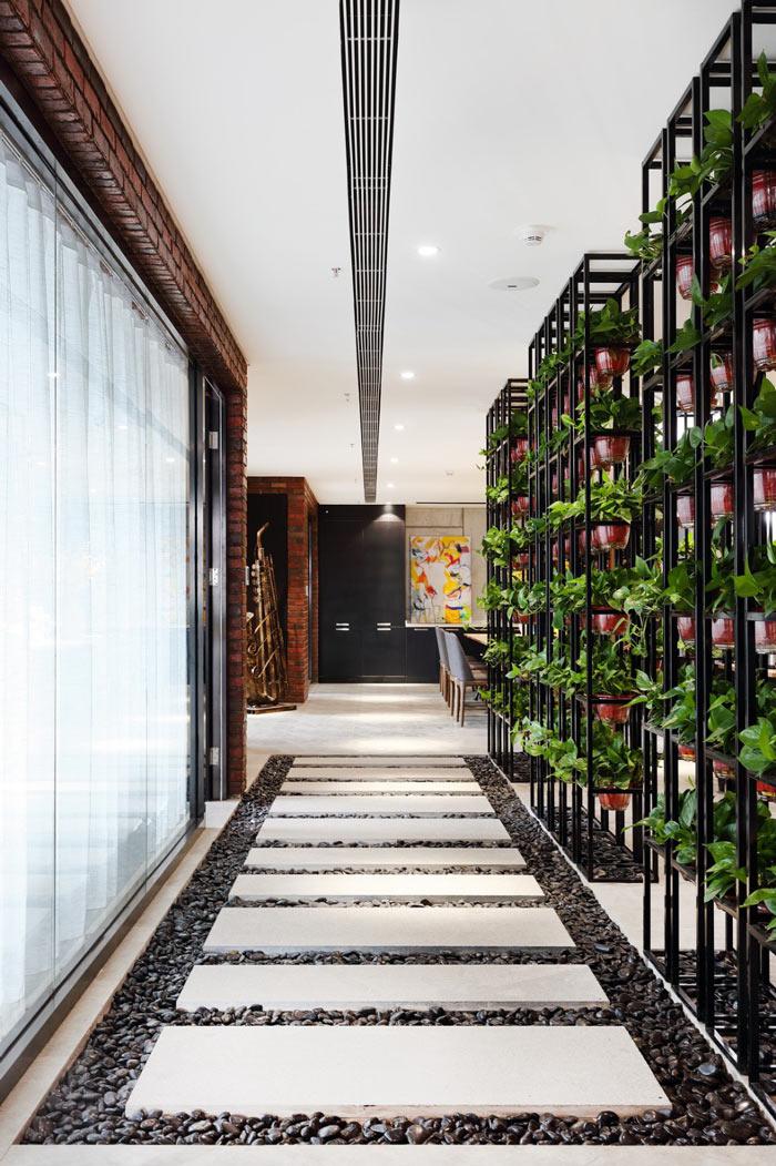 過(guò)道設(shè)計(jì)師將其設(shè)計(jì)成漫步區(qū),漫步區(qū)與綠植區(qū)結(jié)合在一起,為空間打造了一處觀賞區(qū),讓員工在這里放松心情、忘卻煩惱。