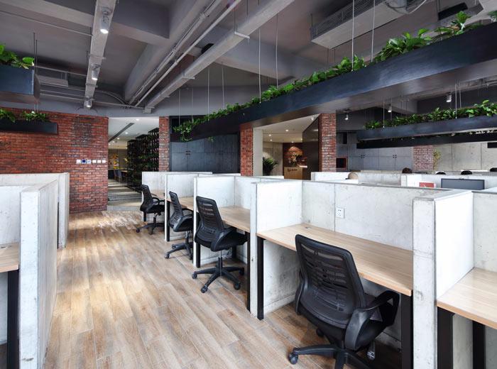 開(kāi)放式的辦公區(qū)為員工打造一個(gè)開(kāi)放式的辦公空間,辦公桌三面隔斷為員工留下了私人空間,抬頭與低頭員工看到的景色截然不同。
