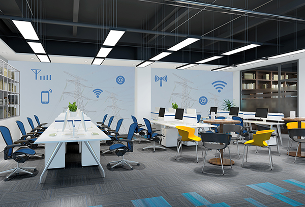 在采光方面,也加強(qiáng)了自然光的利用,人工照明也力求舒適柔和不刺眼目。在辦公空間設(shè)計(jì)的配色上,以黑白藍(lán)為主色,以簡(jiǎn)潔、完美的造型給人們帶來精神上的享受,辦公室設(shè)計(jì)出來的整體效果要給人一種明亮、青春、充滿活力特性。