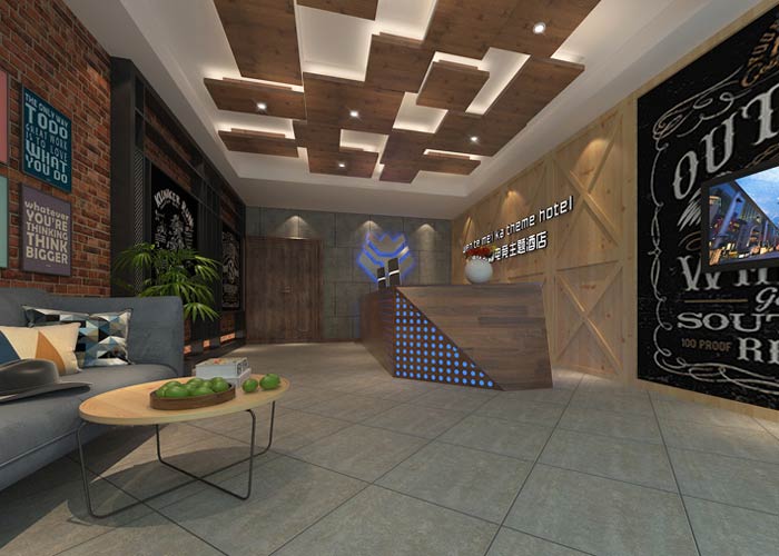 電競酒店前臺設計:前臺的設計類似于咖啡廳設計,之所以這樣設計,是設計師希望本次酒店設計區(qū)別于以往的設計,這樣做是為了與酒店的屬性相吻合,打造屬于自己的風格。
