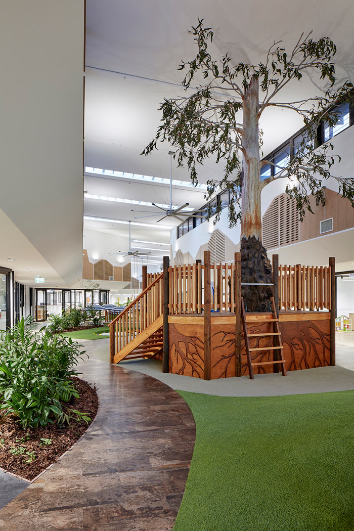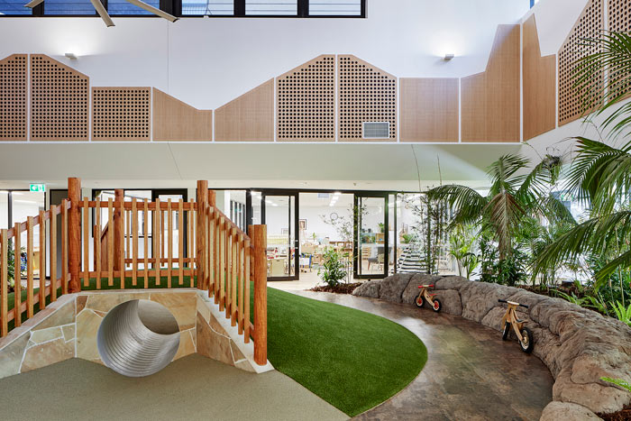 【早教中心裝修廳設(shè)計】自然區(qū):這里還原了很多自然屬性,孩子對于世界的認識是初步的,設(shè)計師希望讓孩子在這里逐步去了解自然,讓孩子通過自己不斷的發(fā)現(xiàn),激發(fā)孩子的想象力。