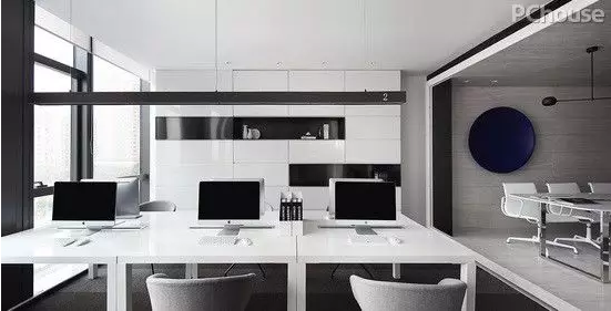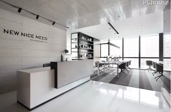 而是先將大的辦公室板房空間通過不同材質(zhì)、顏色、燈光作解構(gòu),將材質(zhì)依照其各自肌理條件,觀察在燈光下呈現(xiàn)出的顏色和狀態(tài),以此為設(shè)計依據(jù),才開始考慮圖上的設(shè)計作業(yè)。在拆分然后歸納材質(zhì)和色調(diào)變化之后,發(fā)現(xiàn)整個空間在色調(diào)的構(gòu)成上呈現(xiàn)的是較大比例,不同亮度和存在狀態(tài)的灰和白的主調(diào)。