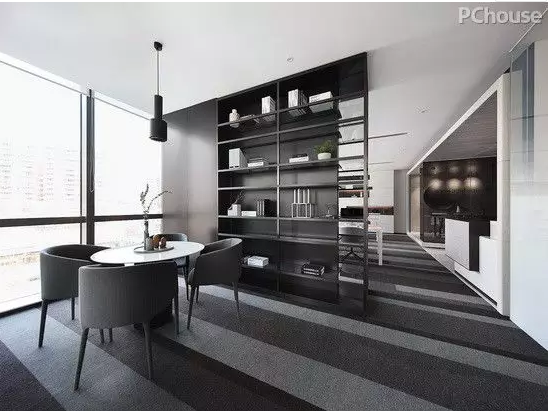 白色的調(diào)子是整個重新建構(gòu)的空間中保持穩(wěn)定的部分,而由定制水泥板、木質(zhì)造型的體塊、灰色玻璃、地毯、家私形成的不同色調(diào),不同質(zhì)感的灰色,就成了整個空間中最活潑的元素,與白色相得益彰。