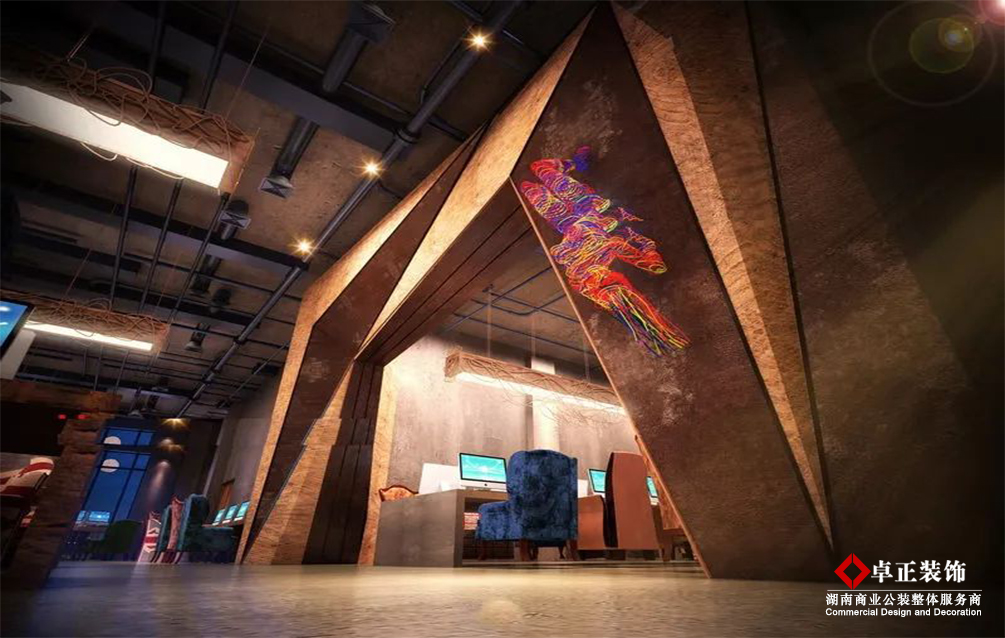 網(wǎng)咖裝修設(shè)計宜采用較為前衛(wèi)的設(shè)計以體現(xiàn)一種潮流的酷味,以小編的經(jīng)驗來說在天花板方面,一般上檔次的網(wǎng)咖裝修設(shè)計時多會選用二級吊頂,用燈光來調(diào)節(jié)網(wǎng)咖氛圍,以及在中間可以用鋼架或其它時尚材料點綴,千萬不要用石膏扣板之類做徒勞無功的事,這樣反而會把網(wǎng)咖內(nèi)部的空間布局破壞。